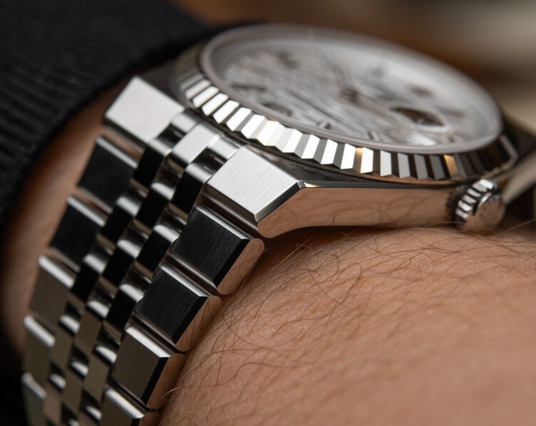 For the first time, Rolex uses its ceramic-sleeved bracelet pins in a steel bracelet — although for steel, these are just inside the end links. The little sleeved pins premiered inside the Day-Date 40 watches of 2015 and have gradually found their way into other precious metal bracelets of the brand. These are used to eliminate abrasive friction and the eventual “stickiness” that plagued certain bracelets. The little ceramic sleeves should help keep the Flat Jubilee bracelets of the Land-Dweller flexible and stretch-free for years and hopefully decades. Sadly, the Crownclasp (a concealed clasp marked only by a crown) is still without a micro-adjust, a painful omission for AAA copy Rolex watches clearly meant for everyday wear. It would be neat if Rolex assigned some of its engineers with the task of integrating a tool-free micro-adjust into the Flat Jubilee bracelet.